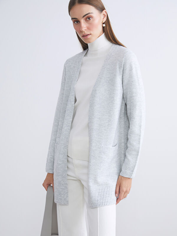 მრგვალი საყელო ნიმუშიანი ქალებისთვის ტრიკოტაჟი კარდიგანი